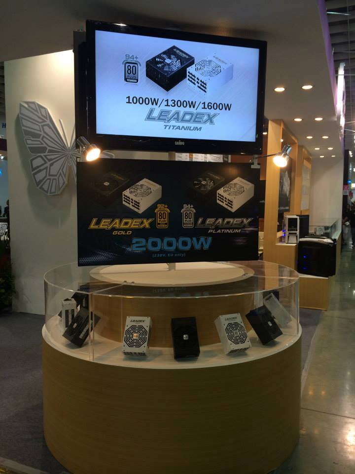 La marque au papillon présente de nouvelles références au Computex 2014, avec la mention 80+ Platinium ! C’est la série LEADEX qui s’agrandis, avec des versions 600W, 1000W, 1300W, et 1600W, ayant un rendement de 94% à 50% de charge ! Une alimentation délivrant 2000W destinée au marché européen semble en développement.