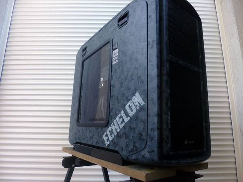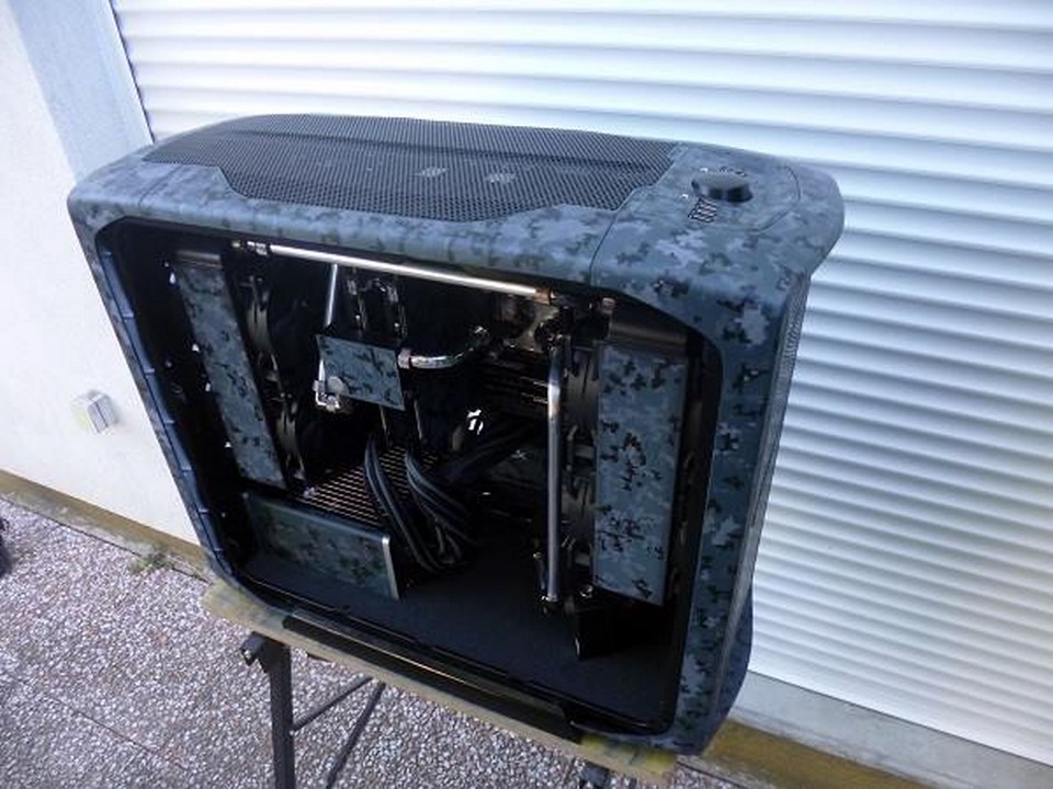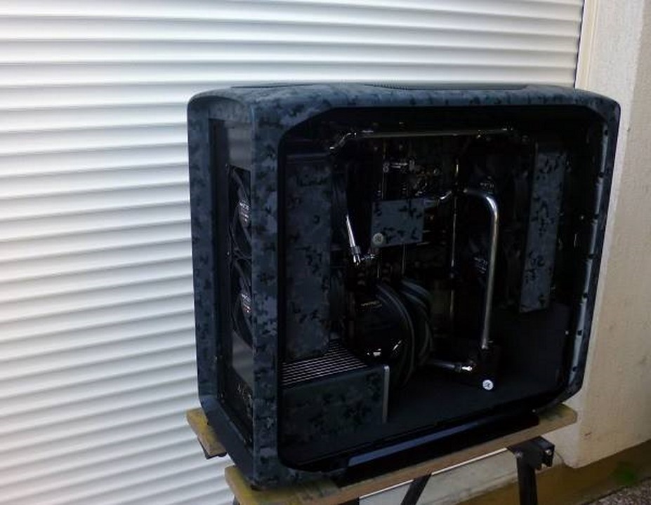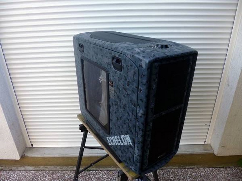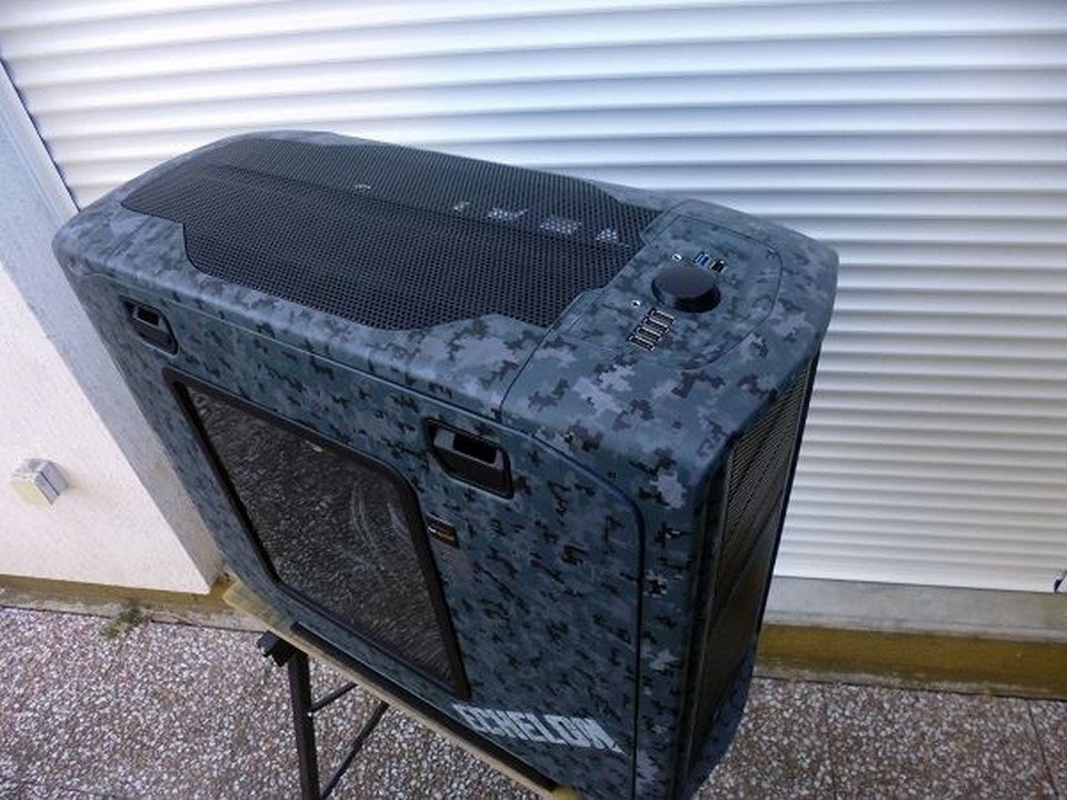 Souvenez vous, début mars, Math attaquait un nouveau mod pour la sortie des nouveaux périphériques d’Asus : la gamme Echelon. Pour s »inscrire dans un camouflage digital bleuté, qui d’autres que Math ?! C’est à grand renforts de Dremel et d’aérographe qu’il nous a une fois de plus abasourdi, avec l’aide de ses partenaires Asus France, VedayShop.fr, Western Digital, beQuiet!, EKWB, Dremel, et enfin Kingston. Grâce à un nouvel agencement intérieur, à d’astucieux pochoirs, et de nombreuses couches de peintures, notre moddeur a su sublimer le 600T tant aimé.