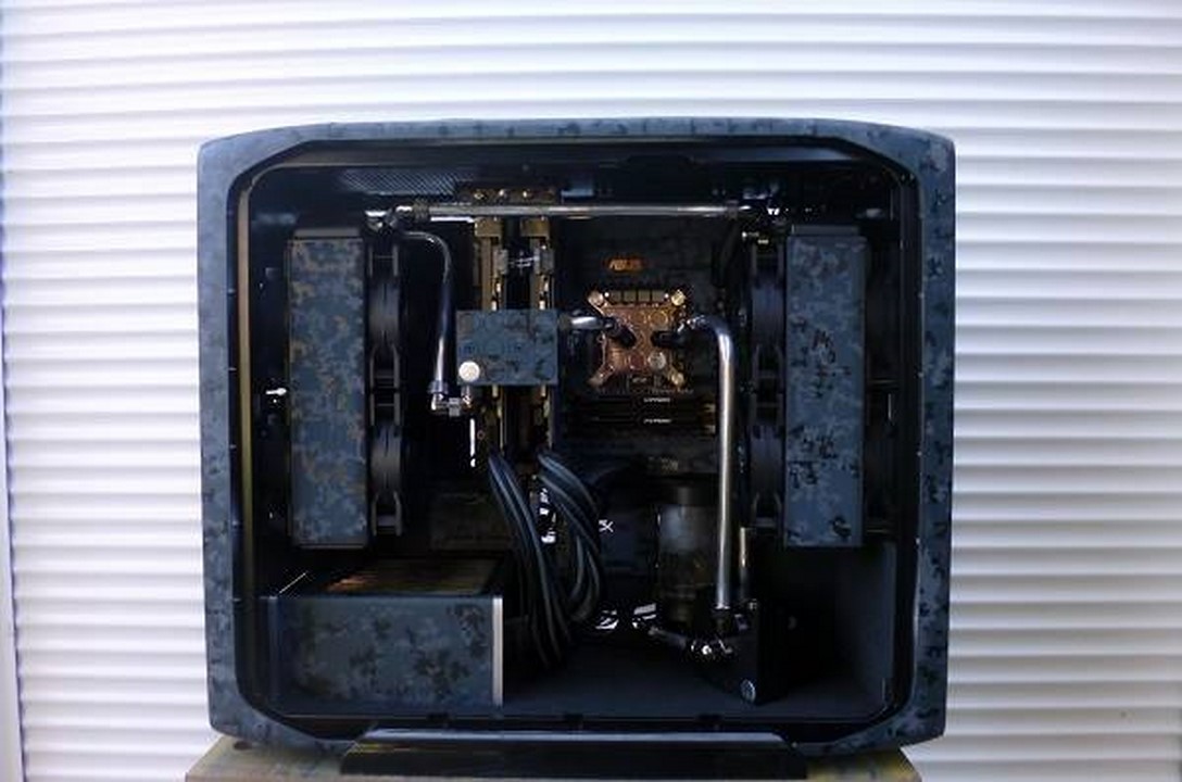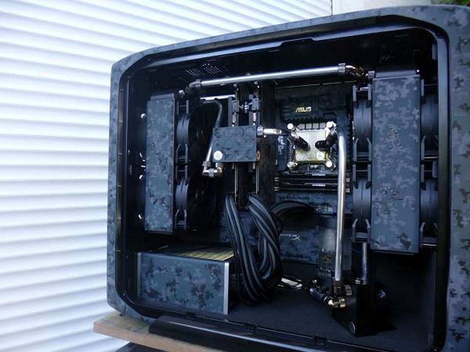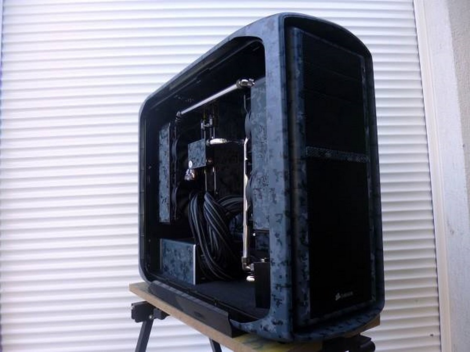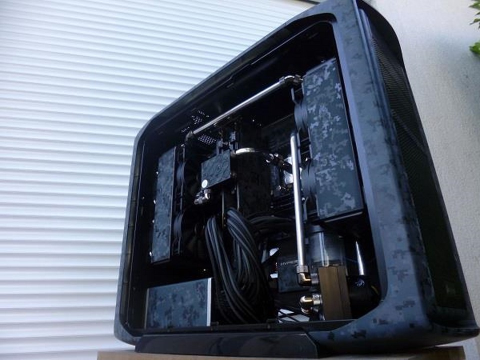 Souvenez vous, début mars, Math attaquait un nouveau mod pour la sortie des nouveaux périphériques d’Asus : la gamme Echelon. Pour s »inscrire dans un camouflage digital bleuté, qui d’autres que Math ?! C’est à grand renforts de Dremel et d’aérographe qu’il nous a une fois de plus abasourdi, avec l’aide de ses partenaires Asus France, VedayShop.fr, Western Digital, beQuiet!, EKWB, Dremel, et enfin Kingston. Grâce à un nouvel agencement intérieur, à d’astucieux pochoirs, et de nombreuses couches de peintures, notre moddeur a su sublimer le 600T tant aimé.