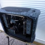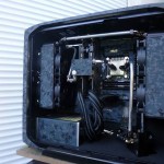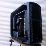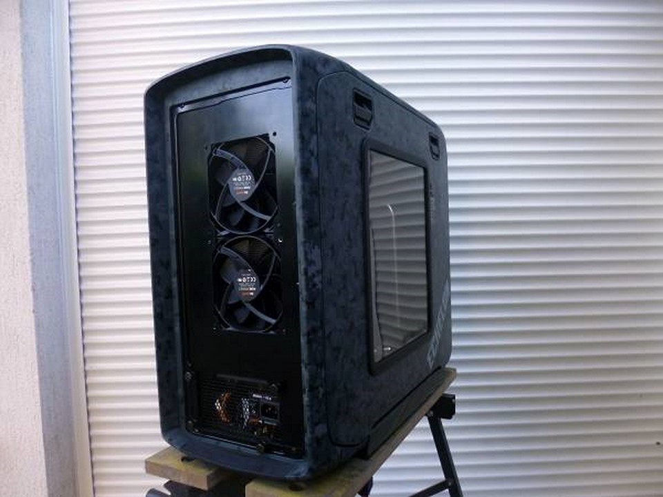 La configuration n’est autre qu’un Corsair 600T, une carte mère Asus Gryphon Z87 et son armor kit, avec un Intel Core i7 4770K, 16 Go de RAM Kingston HyperX Fury PC3-14900, deux SSD Kingston HyperX 3K 120Go en en RAID 0, un SLI d’Asus GTX670 DCUII, et une alimentation beQuiet! Dark Power Pro 1000W. La ventilation est confiée aux beQuiet! Pure Wings 2.