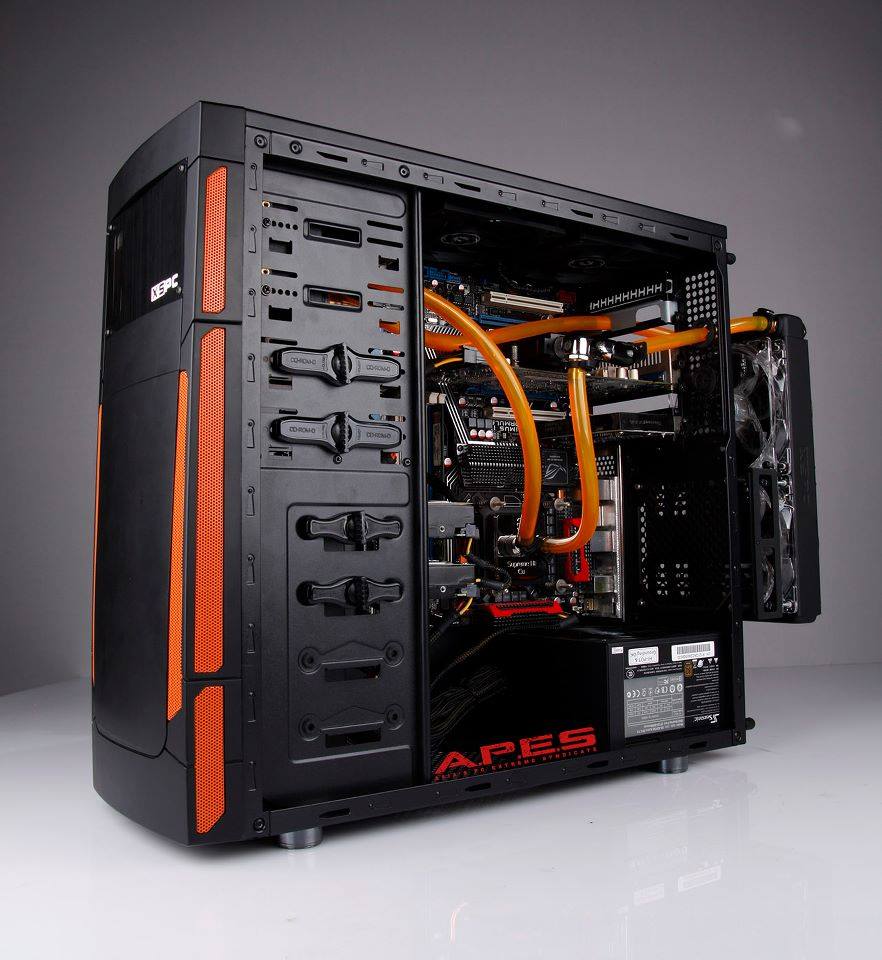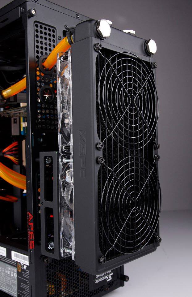 Un chouette mod sur un boitier Bitfenix Outlaw. Au programme de l’inversion de carte mère et un gros watercooling avec radiateur externe.