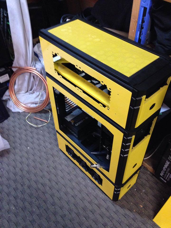 Le CES est typiquement le genre de salon ou les fabricants exhibent le boulot des modders pro. Chez Cooler Master on trouve un joli mod sur une base HAF Stacker 935 et 915 réalisé par un habitué des salons.