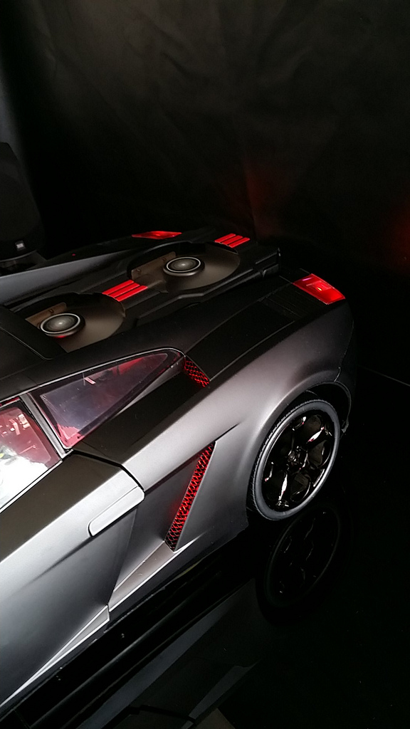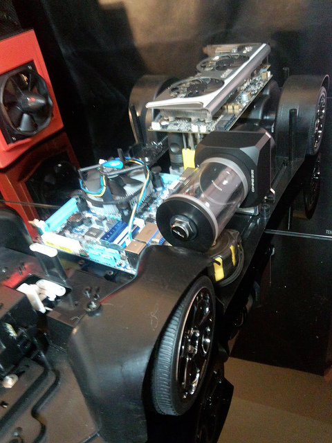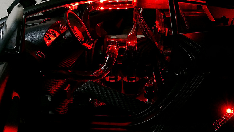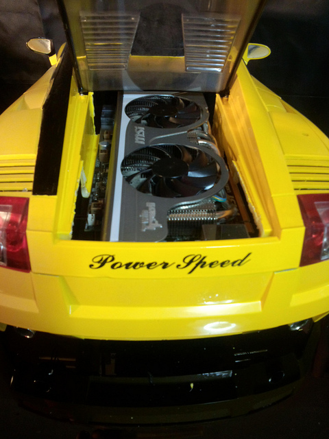 Ce modder s’est donc mit en tête de faire rentrer sa configuration dans une reproduction de Lamborghini. La voiture qui lui sert de boitier n’a coûté que 15 $ mais le résultat est remarquable !