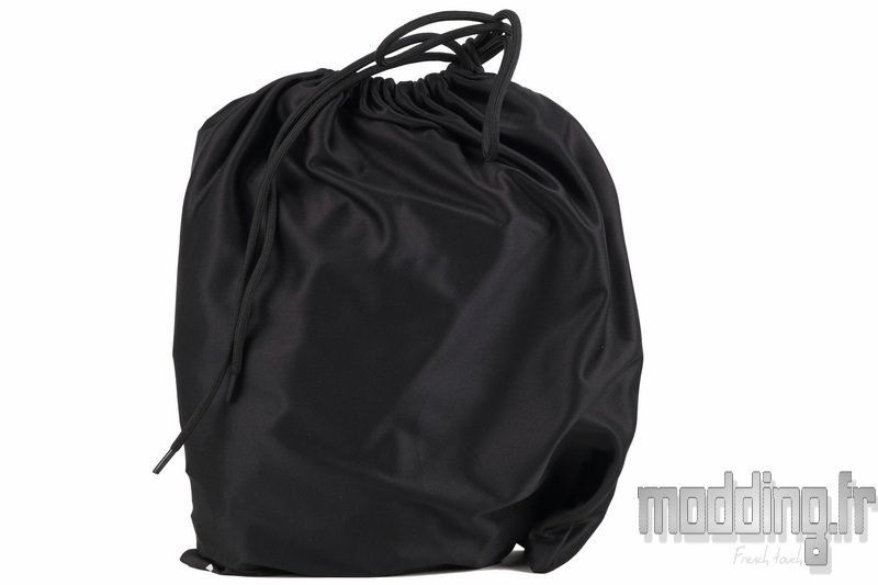 Les différents câbles sont rangés dans une housse en tissu noir, fermée par une cordelette assortie, offrant un rangement soigné et évitant qu’ils ne s’emmêlent lors du transport.
