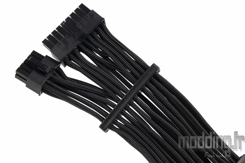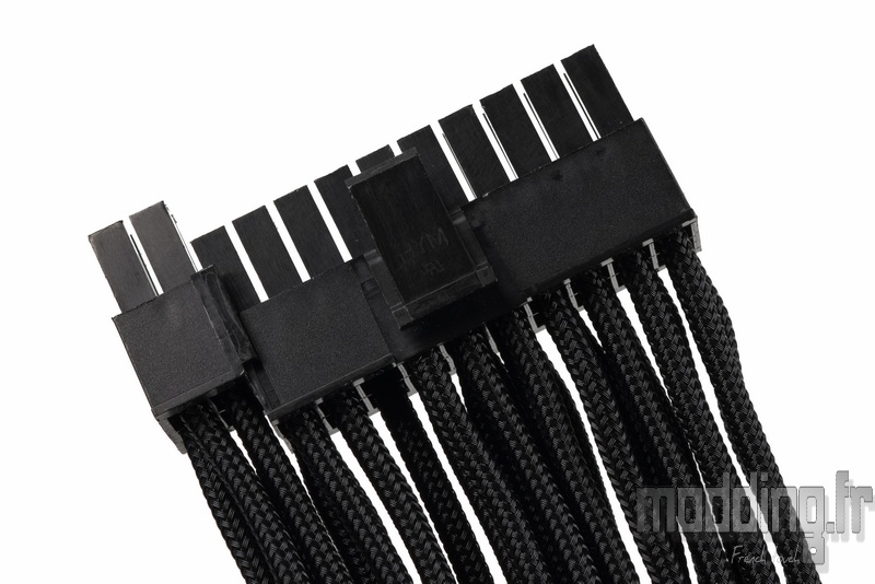 Du côté de la carte mère, le câble se termine par un connecteur 20+4 broches, équipé d’un système d’assemblage par glissières permettant de verrouiller solidement les deux parties lorsqu’elles sont réunies.