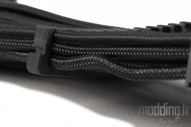 Point de peignes ni de gaine tressée : à l’instar du câble 12V-2×6 optionnel, les fils des câbles pour périphériques présentent un embossage à motif quadrillé.