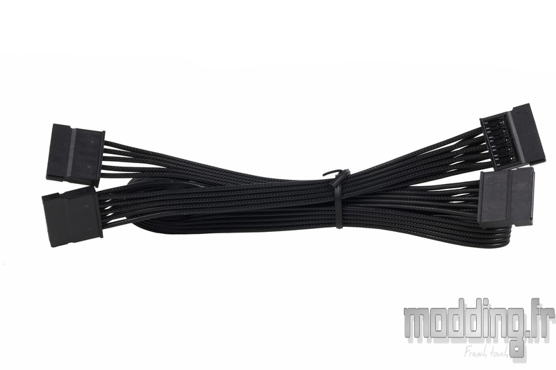 Pour les périphériques, la SX1200P est livrée avec deux câbles SATA, chacun équipé de quatre connecteurs SATA droits.