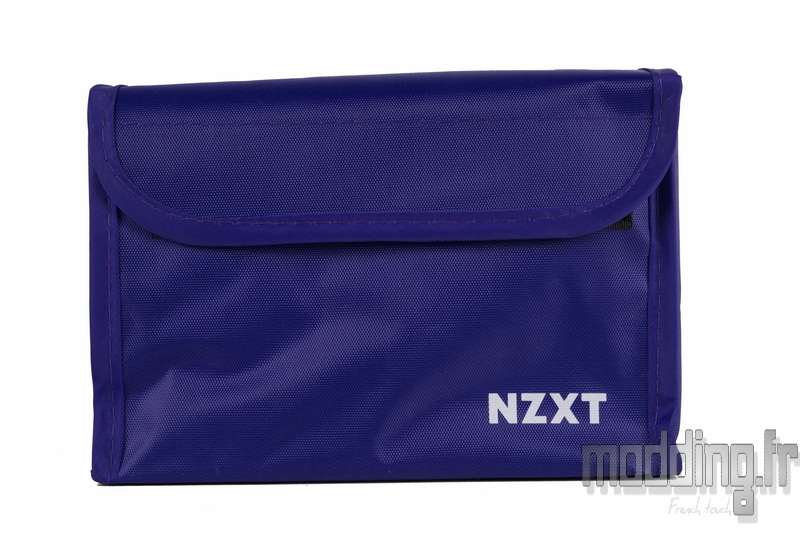 Si la protection du bloc se limite à deux cales en carton thermoformé, NZXT soigne en revanche la présentation des câbles. Ces derniers prennent place dans une pochette mauve, couleur fétiche de la marque, parfaitement en cohérence avec l’identité visuelle du packaging.