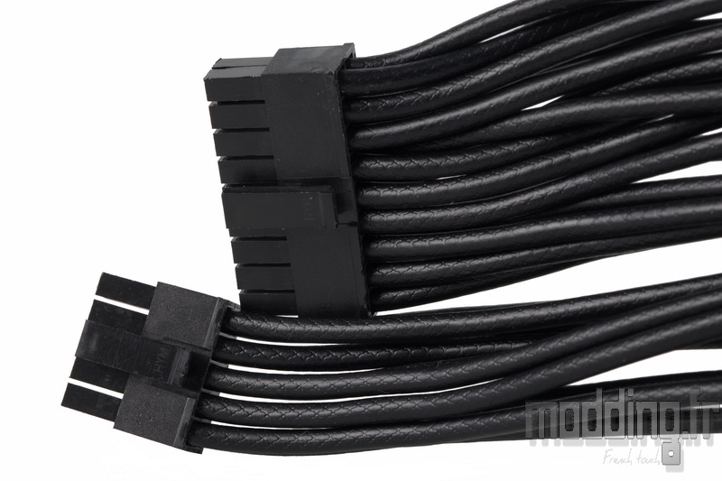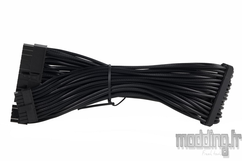 Doté d’un seul peigne de maintien, le câble ATX se termine, côté carte mère, par un connecteur 24 broches au format standard.