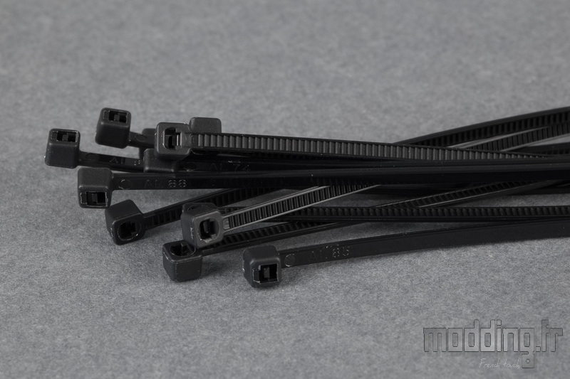 On y trouve notamment plusieurs colliers de serrage type Serflex, utiles pour regrouper et maintenir les câbles afin d’obtenir un routage propre et ordonné à l’intérieur du boîtier.