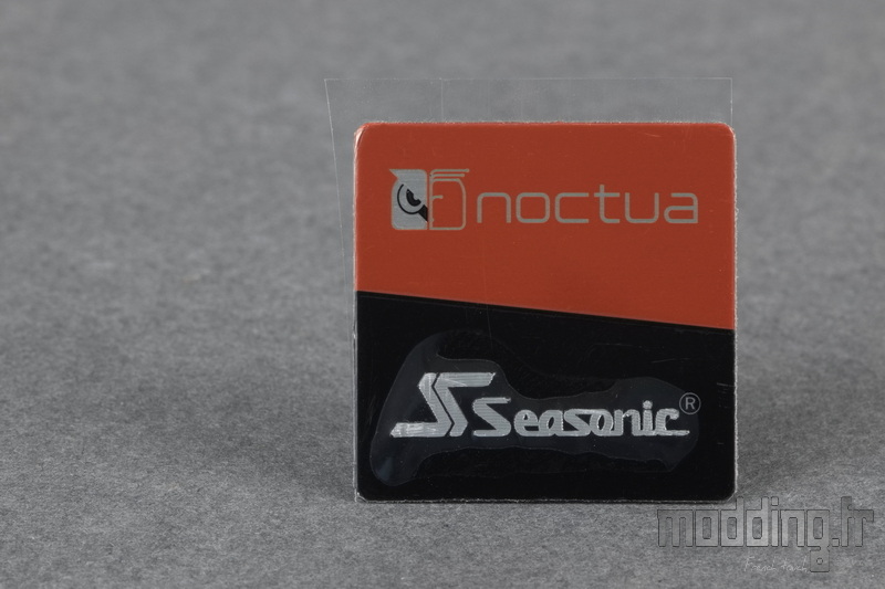 Noctua n’oublie pas de glisser dans le bundle sa petite plaquette adhésive métallique, arborant fièrement son logo, tout comme celui de Seasonic.