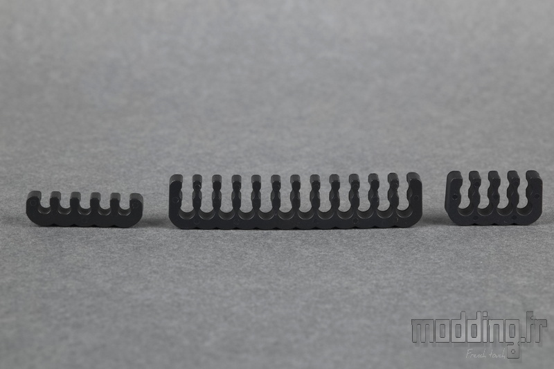 des peignes pour les câbles destinés aux périphériques, d’autres pour le câble ATX 24 broches, ainsi que pour les câbles CPU et PCIe.