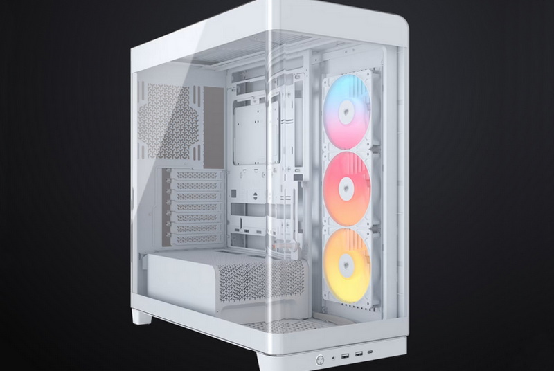 Avec cette conception, le Frame 4500X s’inscrit dans la continuité du concept inauguré avec le 3500X, un autre boîtier “aquarium” au format moyen tour signé Corsair, mais doté, lui, de deux panneaux en verre trempé distincts.