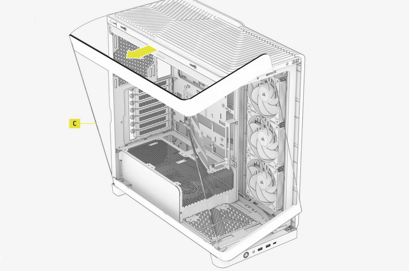 Ce système d’emboîtement implique donc de retirer le panneau en verre trempé avant de pouvoir déposer le top du Frame 4500X, lequel nécessite également le retrait préalable de la grille latérale.