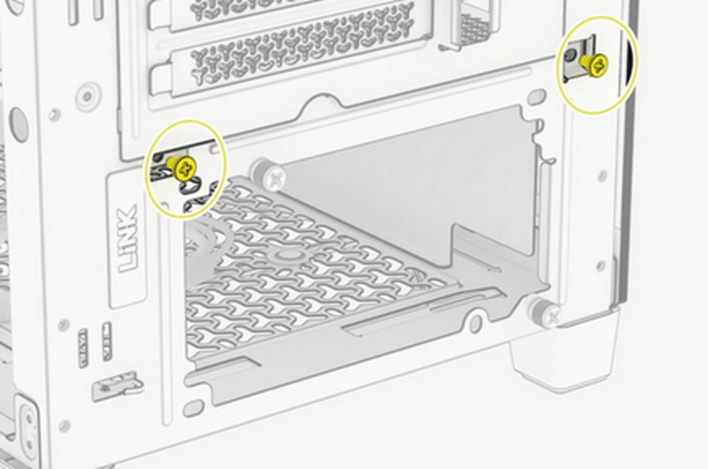 On observe la présence de deux vis standard situées juste sous l’emplacement des équerres PCI.