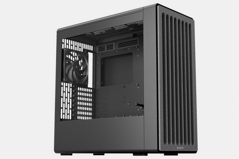 HAVN mise ici sur un large support de ventilation en façade, des espaces internes généreux et quelques solutions bien pensées, dont une rampe positionnée à l’avant du cache-alimentation afin de canaliser le flux d’air directement vers le système de refroidissement de la carte graphique.