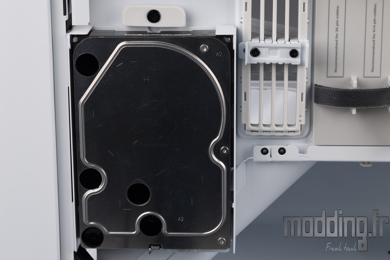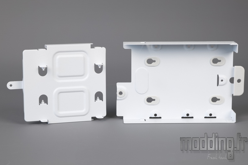 Le boîtier dispose de deux cages HDD conçues pour accueillir soit un disque dur 3,5″, soit deux SSD.