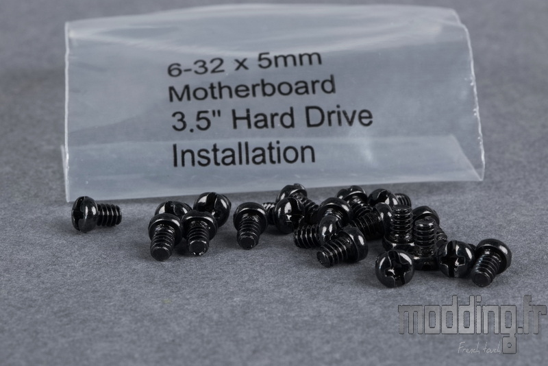 En retirant la platine intermédiaire, la cage peut être utilisée pour installer un disque dur 3,5″. La fixation s’effectue alors sous la structure en acier, à l’aide d’un tournevis et de quatre vis UNC-6.32.