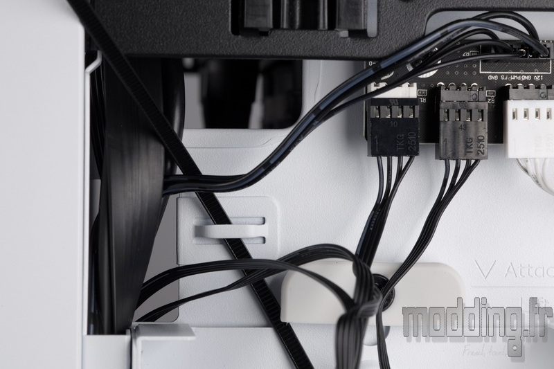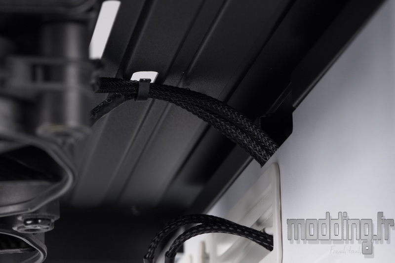 On remarque la présence d’un point d’ancrage à proximité du hub PWM, idéal pour regrouper et maintenir en ordre les câbles provenant des ventilateurs du BF 360 Flow.