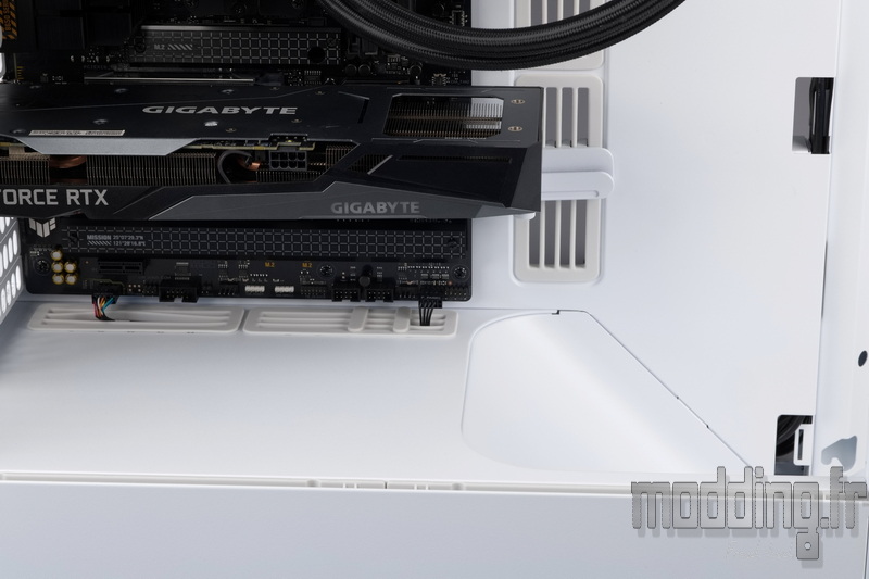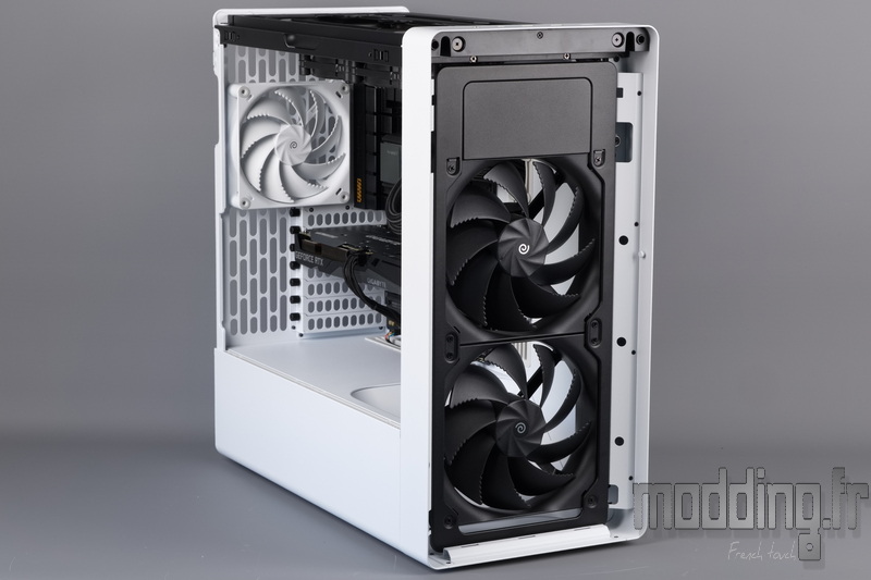 Dans cette configuration, son système de refroidissement profite pleinement du flux d’air généré par la rampe de guidage spécifique au boîtier, positionnée face au ventilateur de 180 mm.