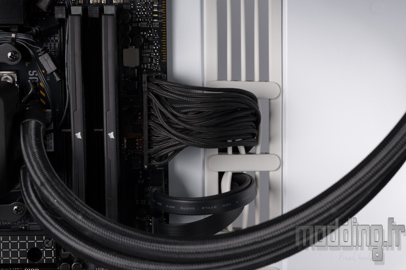 Que ce soit pour le câble ATX ou pour le câblage PCIe, le résultat reste tout aussi propre et bien guidé.