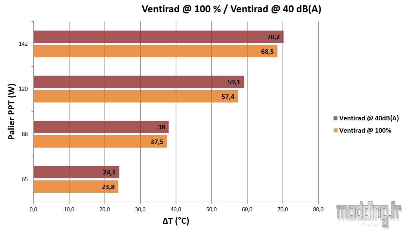 Ventirad @ 100% vs Ventirad @ 40 dB(A)
